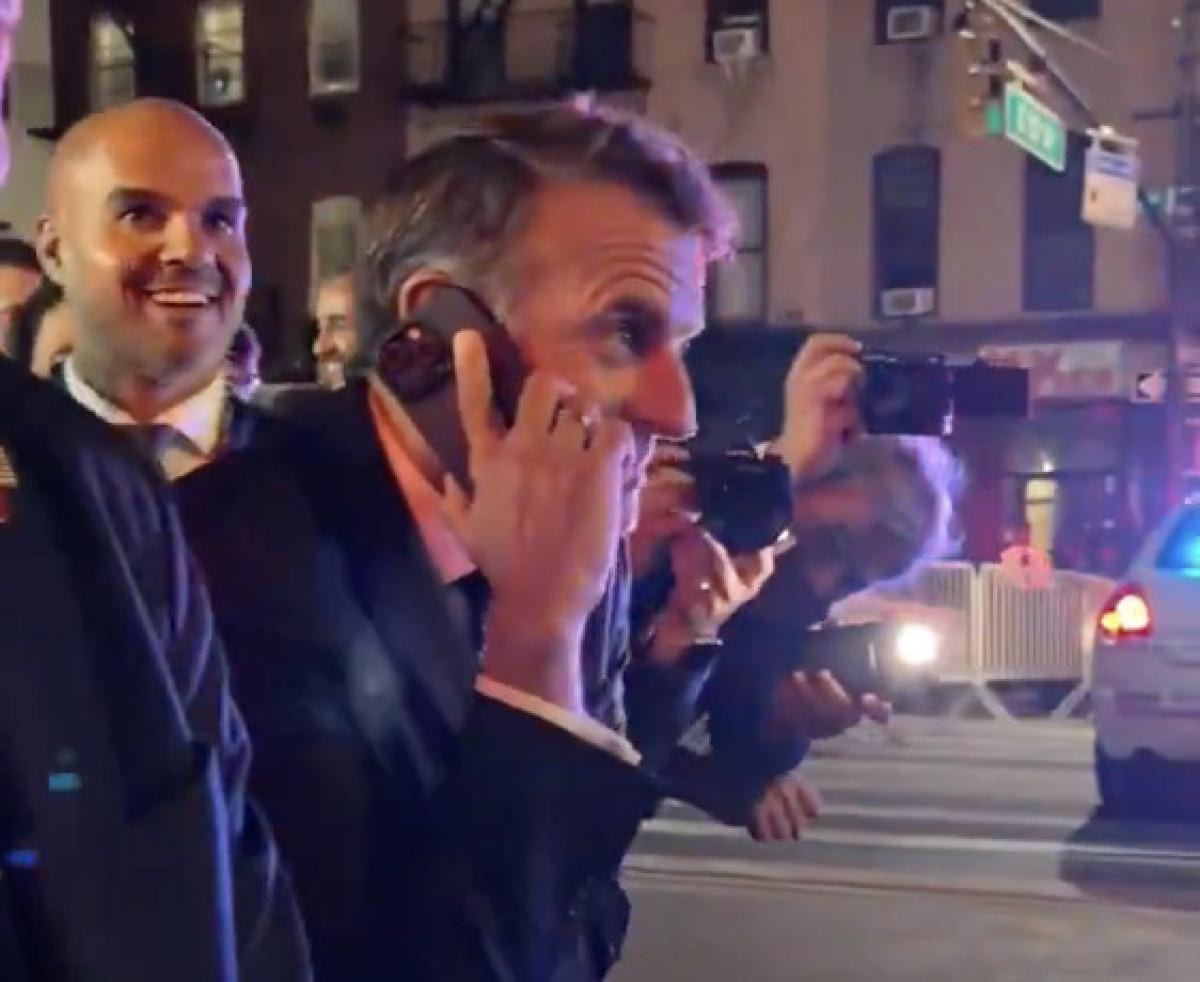 New York sokaklarında yaklaşık 30 dakika yürüyen Macron, isteyenlerle fotoğraf çektirdi.