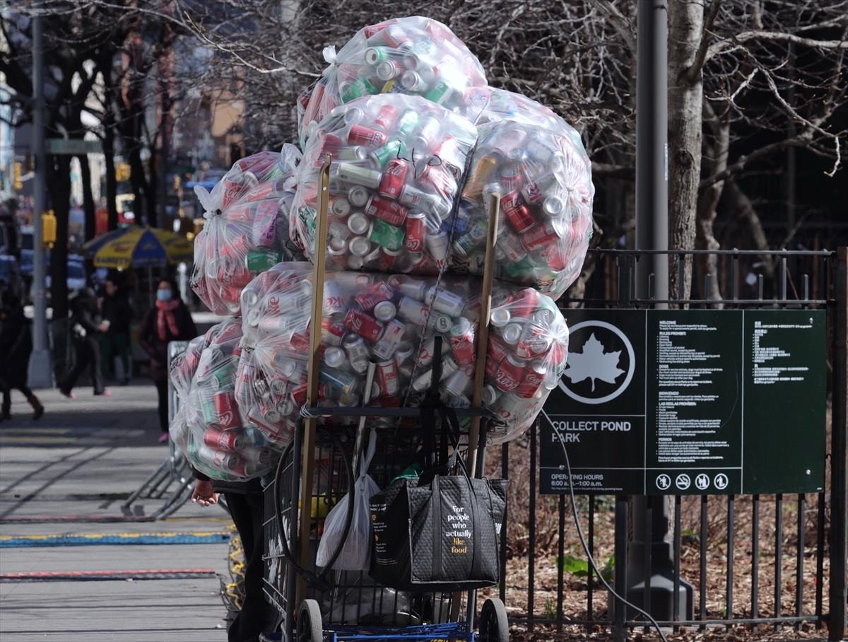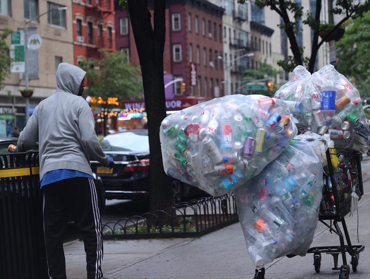 ABD'nin New York eyaletinde iş kayıpları, yüksek enflasyon ve yeni göçmenler nedeniyle daha fazla insan sokaklardan ve çöp kutularından boş şişe ve teneke kutu toplamaya başladı.