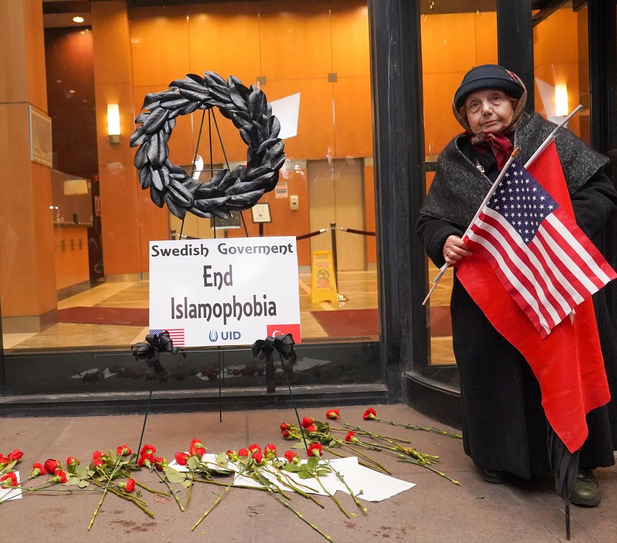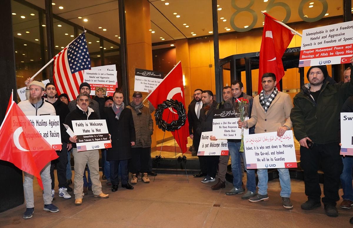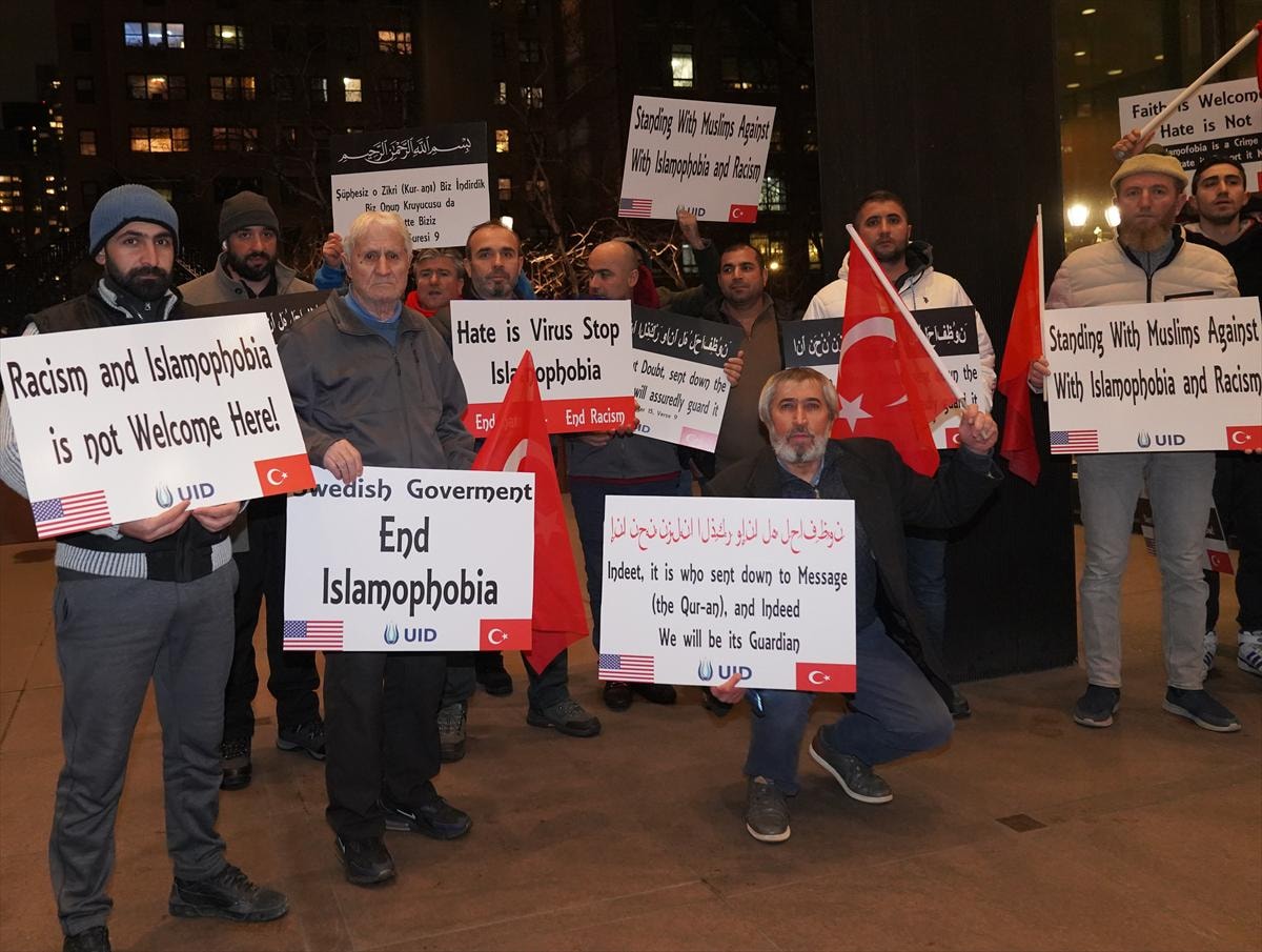 Türk toplumu üyelerinin yanı sıra bazı Arap ve Süryani vatandaşların da desteğiyle, Kur'an yakma eylemi, New York'taki İsveç Başkonsolosluğu önünde protesto edildi.
