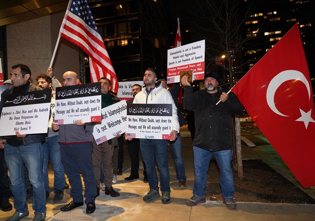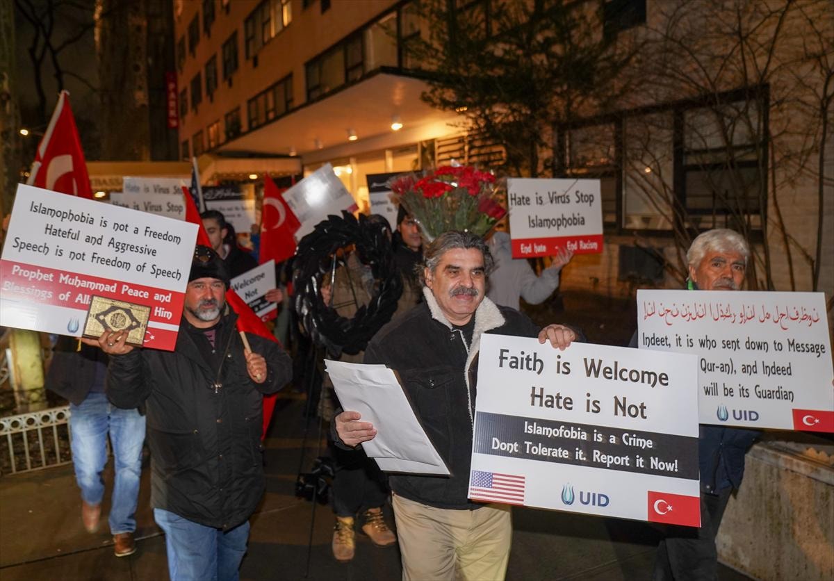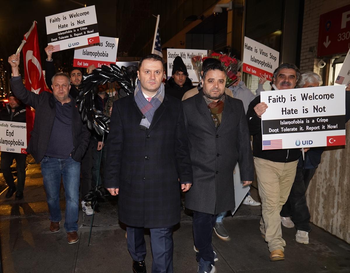 Türk toplumu üyelerinin yanı sıra bazı Arap ve Süryani vatandaşların da desteğiyle, Kur'an yakma eylemi, New York'taki İsveç Başkonsolosluğu önünde protesto edildi.