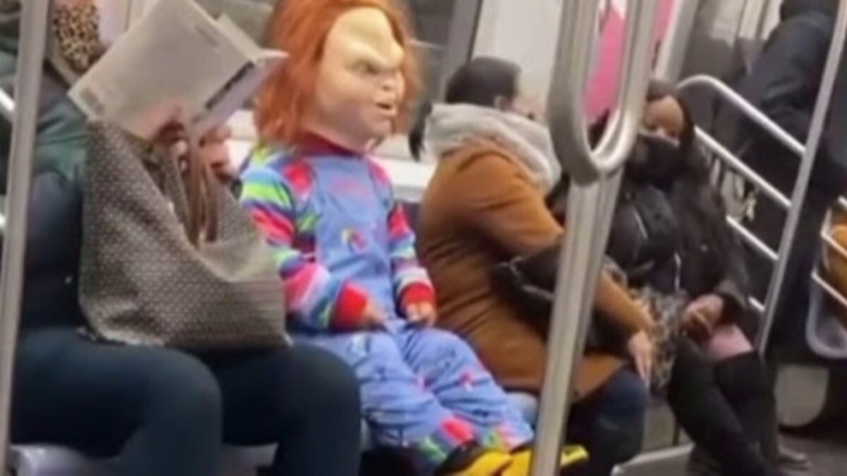 ABD'nin New York kentindeki metroda katil oyuncak bebek Chucky kostümü giyen kişi, maske takmayan genç bir kadına saldırdı.