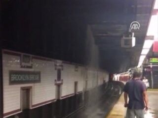 Su basan metroyu kullanmak için Brooklyn Bridge durağına gelen yolcular, zor anlar yaşadı. O anlar, yolcuların kameraları tarafından kaydedildi.