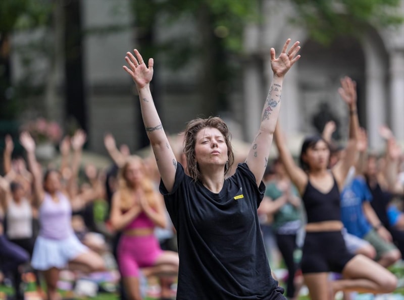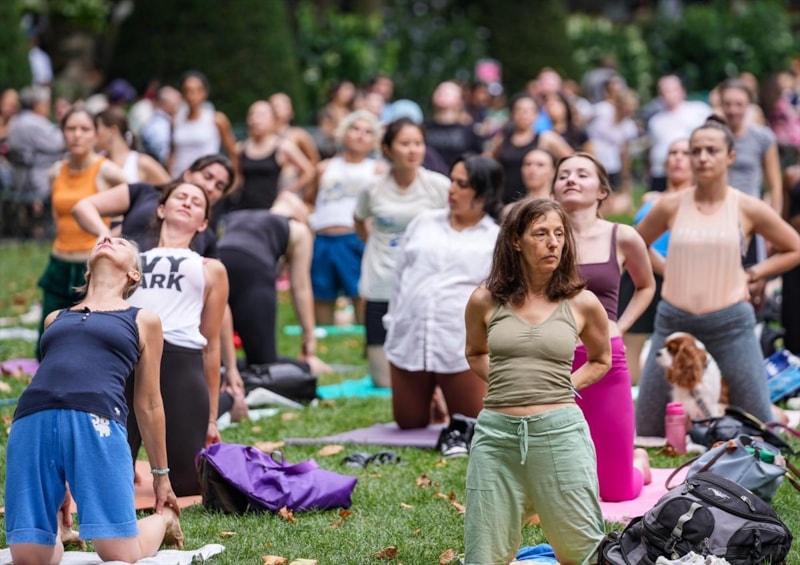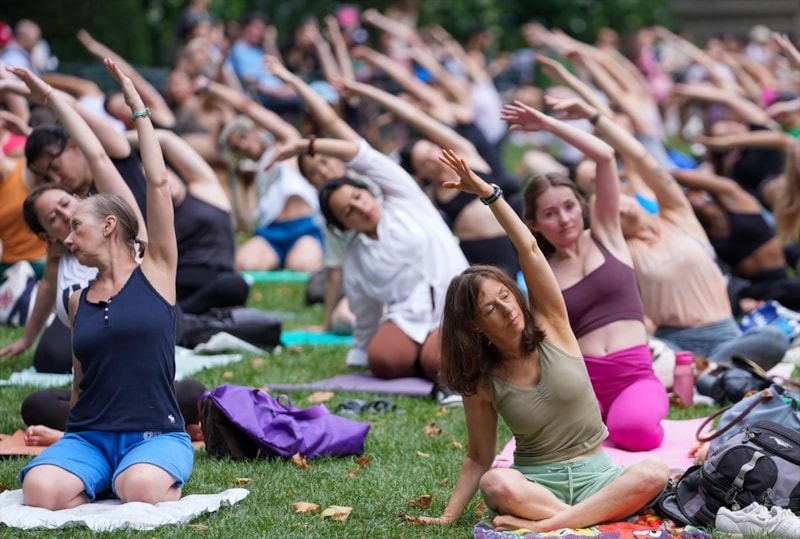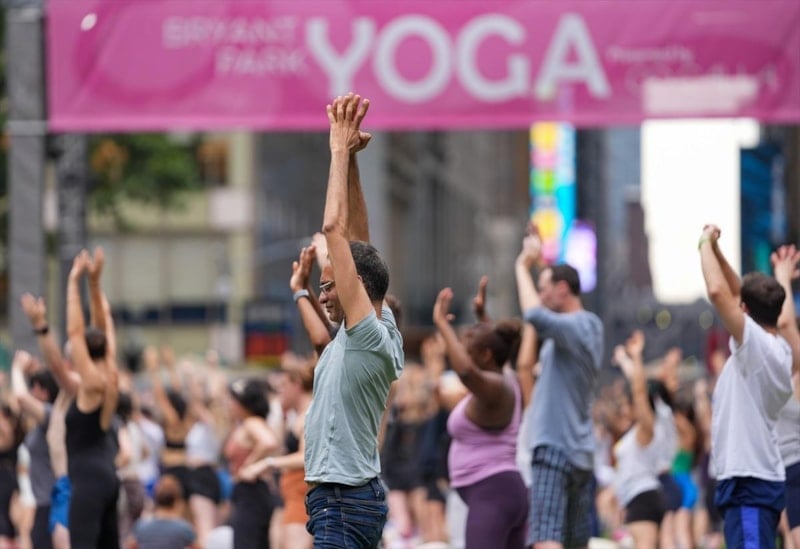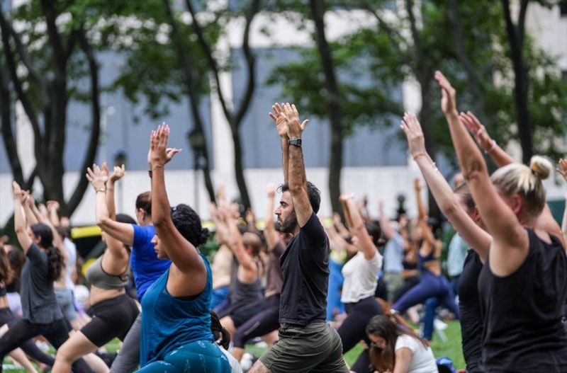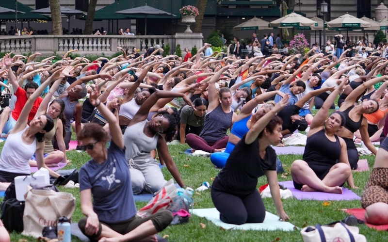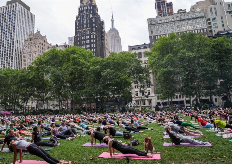 Manhattan bölgesinde bulunan Bryant Park'ta bir araya gelen birçok kişi düzenlenen yoga etkinliğine katıldı.