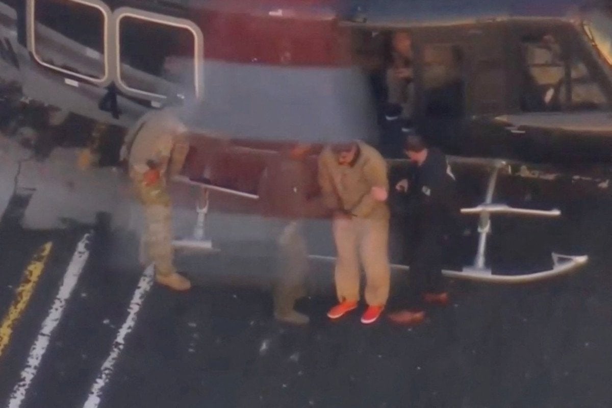 Eşiyle önlü arkalı olarak götürülen Maduro, helikoptere bindirildi.