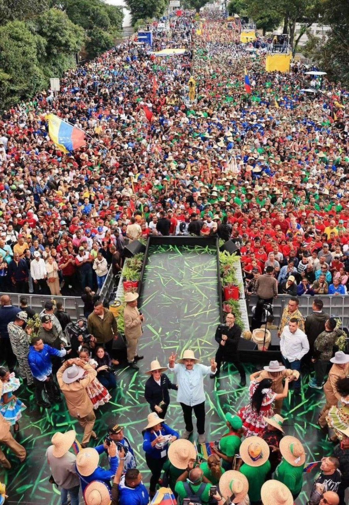 Halkın karşısına dans ederek çıkan Nicolas Maduro, Bobby McFerrin'in 1980'ler hiti "Endişelenme, mutlu ol" anlamına gelen 'Don't Worry, Be Happy' şarkısını söyledi.
