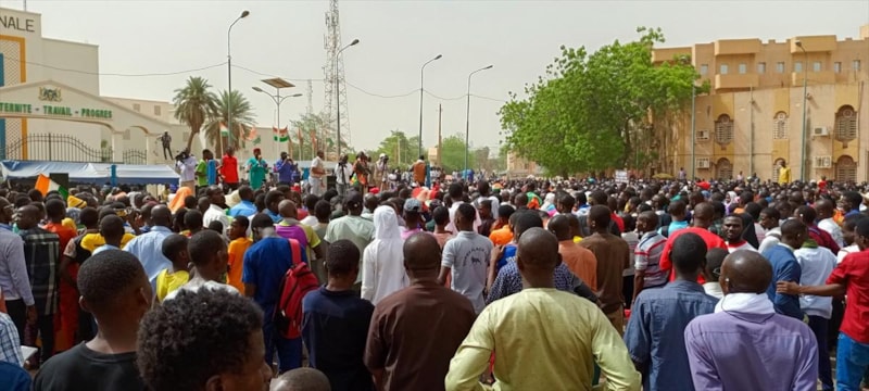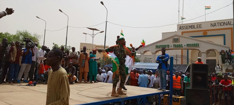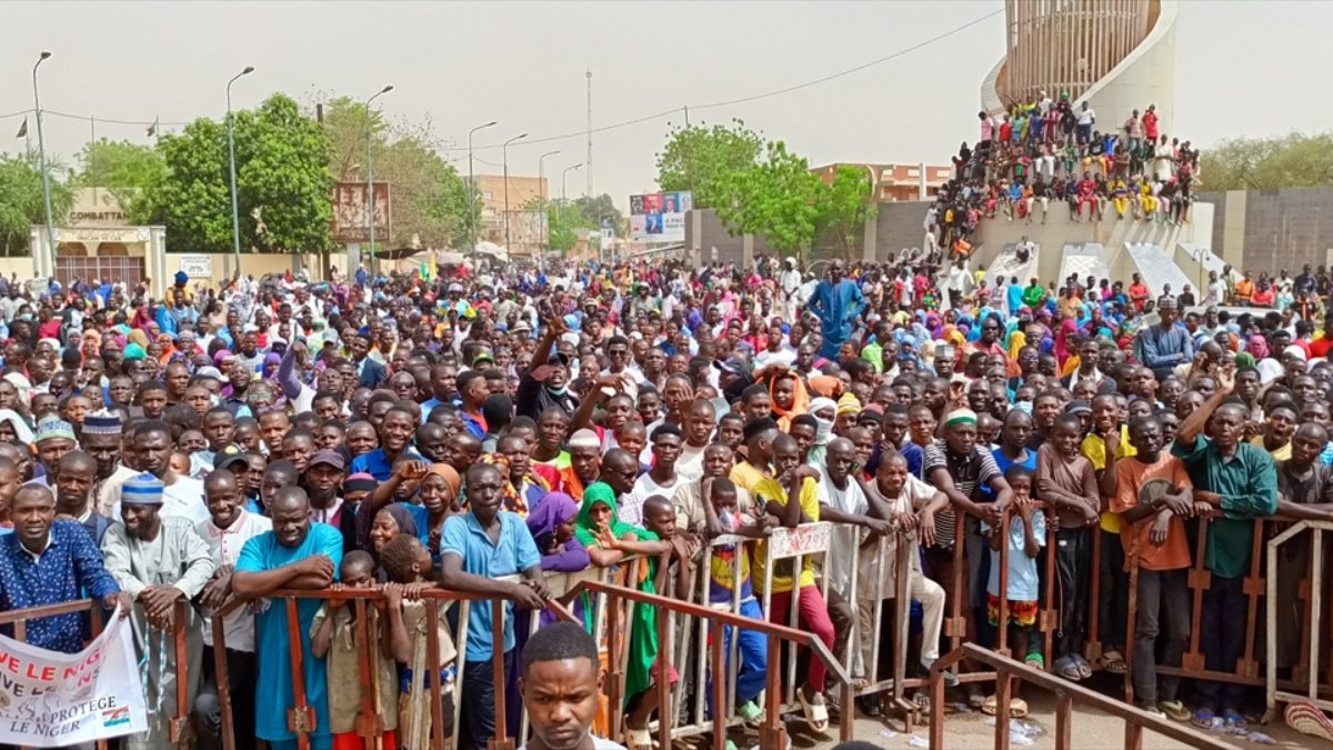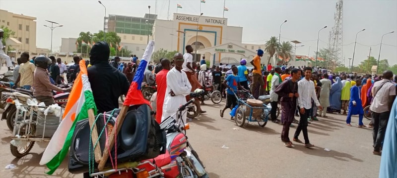 Ulusal Meclis binası önünde toplanan Nijerliler, ABD Savunma Bakanlığı'na bağlı askeri ve sivil personelin ülkede görev yapmasına izin veren askeri anlaşmanın yürürlükten kaldırılması için gösteri düzenledi.