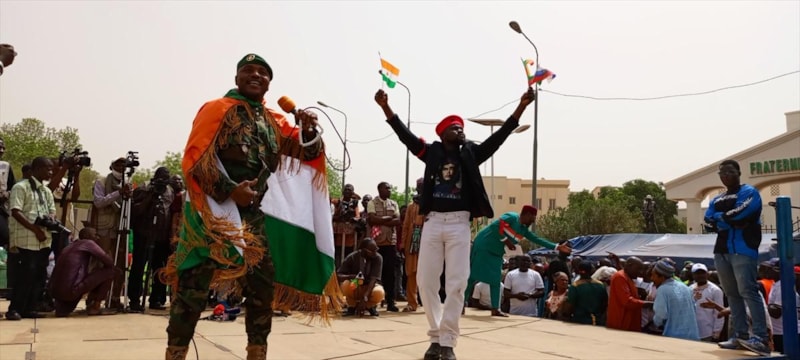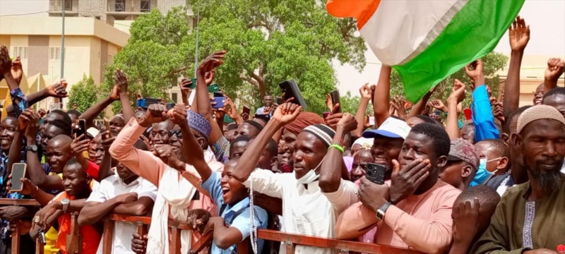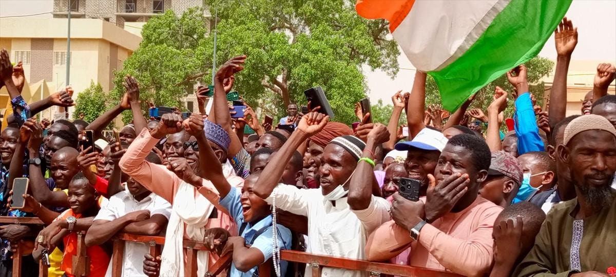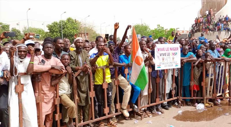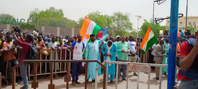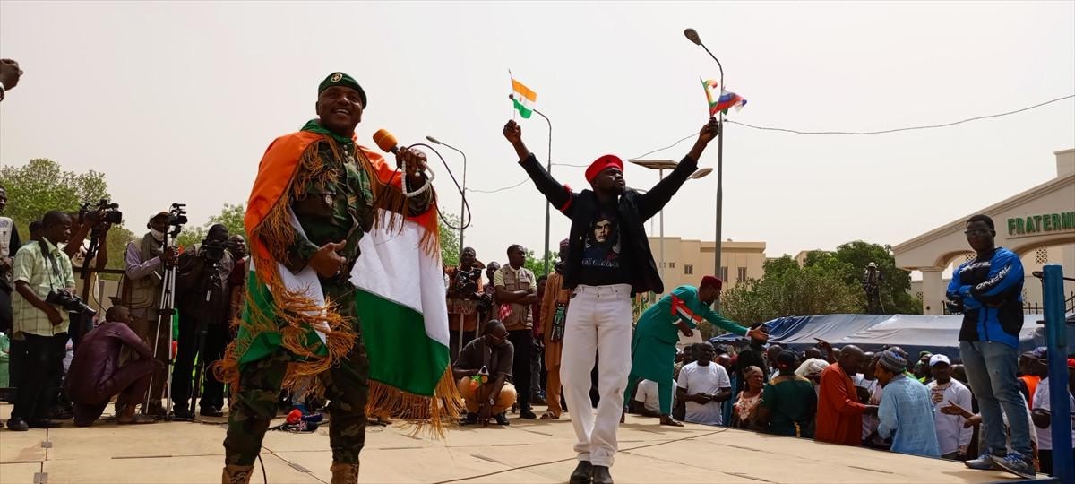 Nijer bayrağı taşıyan göstericiler ABD karşıtı slogan attı. Nijer'de yaklaşık 1000 ABD askeri bulunuyor.