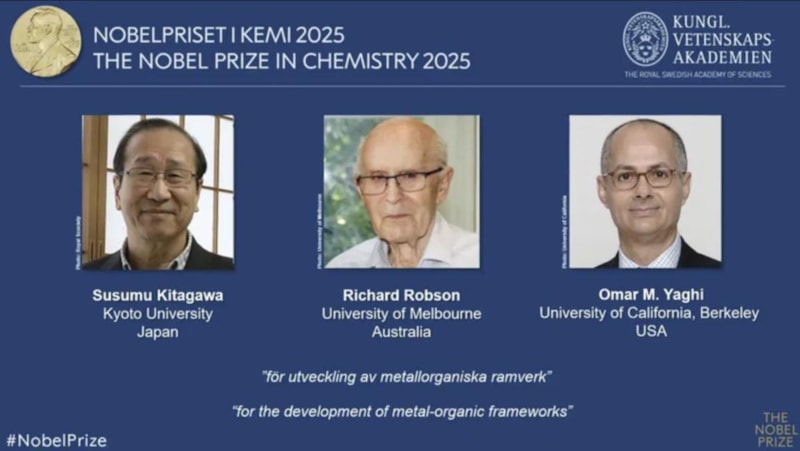 Nobel Kimya Ödülü; Susumu Kitagawa, Richard Robson ve Omar M. Yaghi'ye verildi.