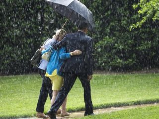 ABD Başkanı Barack Obama'yı New Jersey ziyaretinin ardından helikopterle döndüğü Beyaz Saray'da yağmur sürprizi bekliyordu.
