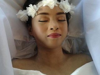 Beyaz bir elbise giyip, saçını ve makyajını yaptıran Pregunta, tabutun içine girerek son dileğini gerçekleştirdi. Genç kadının ölümünden beş gün önce düzenlediği cenaze töreninin fotoğrafları, dış medyada yankı uyandırdı.