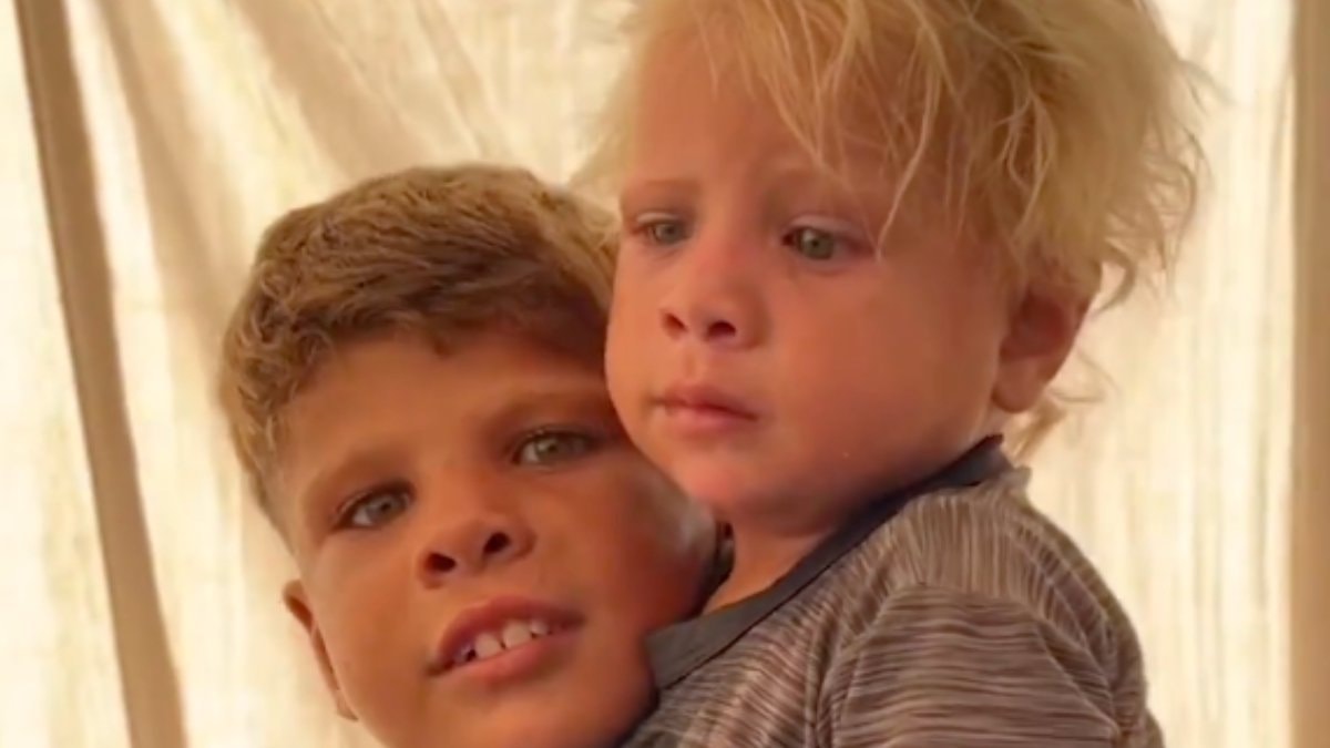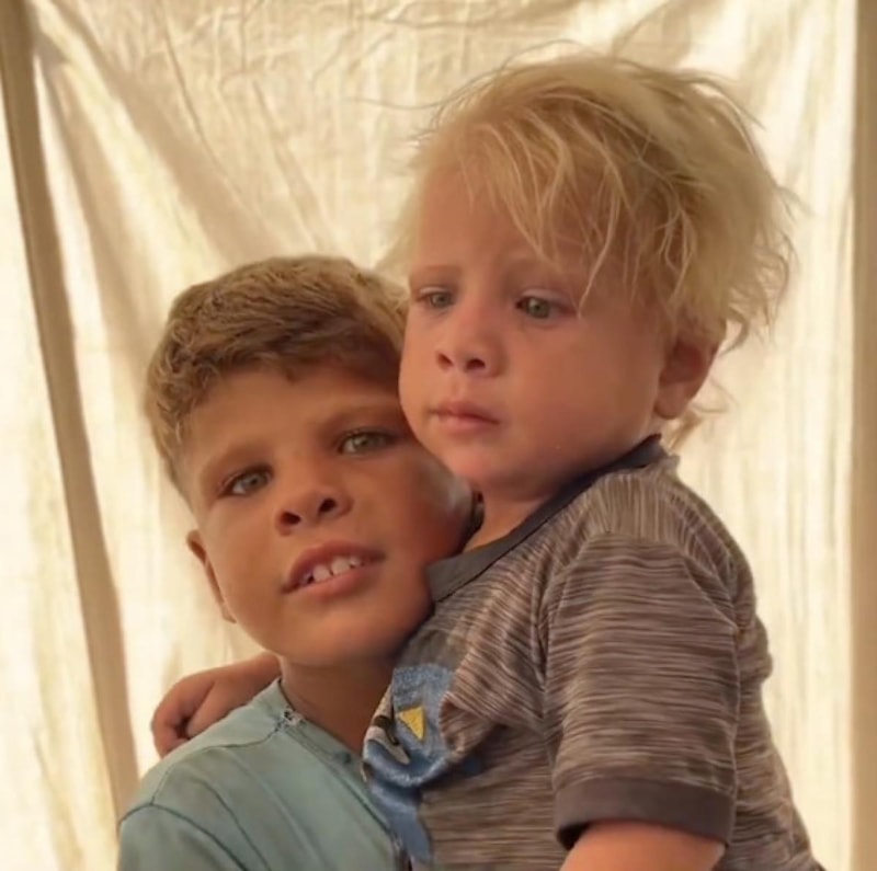 Soykırımcı İsrail’in saldırılarında anne ve babasından kopan iki kardeş, ailesine kavuştu.
