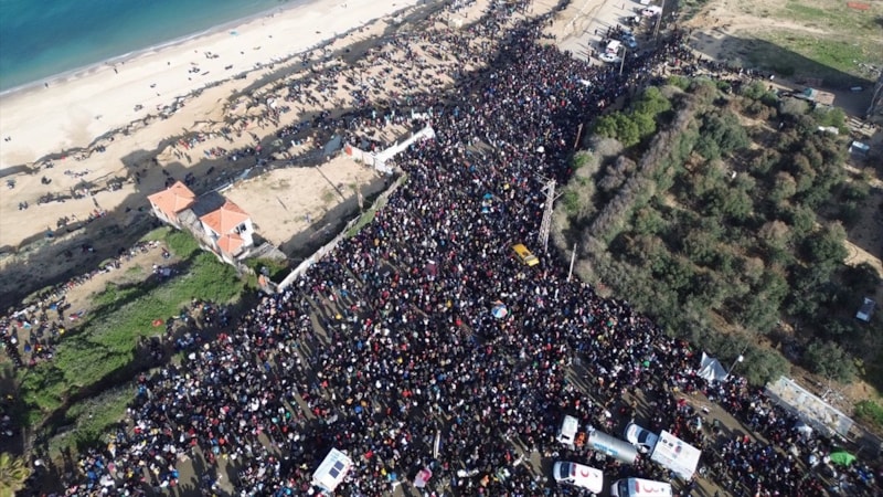 On binlerce Filistinli Gazze'nin kuzey-güney bağlantısını sağlayan, sahil boyunca uzanan Reşid Caddesi'nde toplandı.