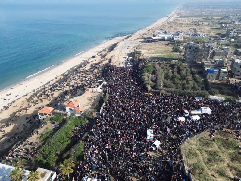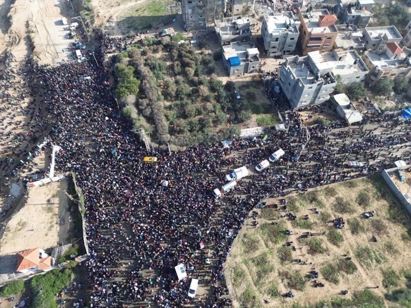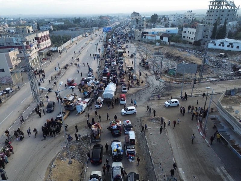 İsrail'in ateşkes anlaşmasındaki yükümlülüğünü ihlal ederek Gazze'nin güneyinden kuzeyine geçişlere izin vermemesine karşın, on binlerce Filistinli yıkılmış da olsa Gazze'nin kuzeyindeki evlerine dönmek için yollara döküldü.