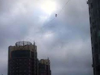 Engels Caddesi’nde 27 kat yüksekliğindeki iki bina arasına gerilen ipte yürüyen cambazın denemesi yoldan geçen vatandaşlar tarafından büyük bir heyecanla izlendi.