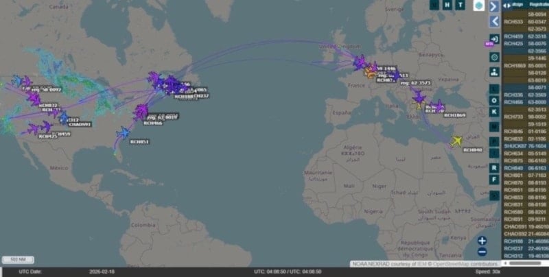 ABD EUCOM ve CENTCOM'un ise 200'den fazla jet ve yaklaşık 108 tanker uçağa ev sahipliği yaptığı tahmin ediliyor.