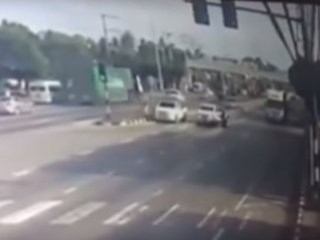 Tayland'da, film sahnelerinden görmeye alışık olduğumuz bir kare, gerçeğe dönüştü. Motosikletli bir adam, arkasından gelen kamyonun çarpması sonucu aracıyla birlikte hareket halindeki yola düştü. Ölüm tehlikesinin tam ortasında kaldı.
