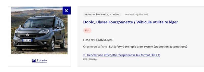 Avrupa Birliği’nin hızlı ürün uyarı sistemi RAPEX (Rapid Exchange of Information System) aracılığıyla yayınlanan bilgilere göre, Fiat Doblo modellerinde tespit edilen kritik bir üretim hatası nedeniyle araçların toplatılmasına karar verildi.