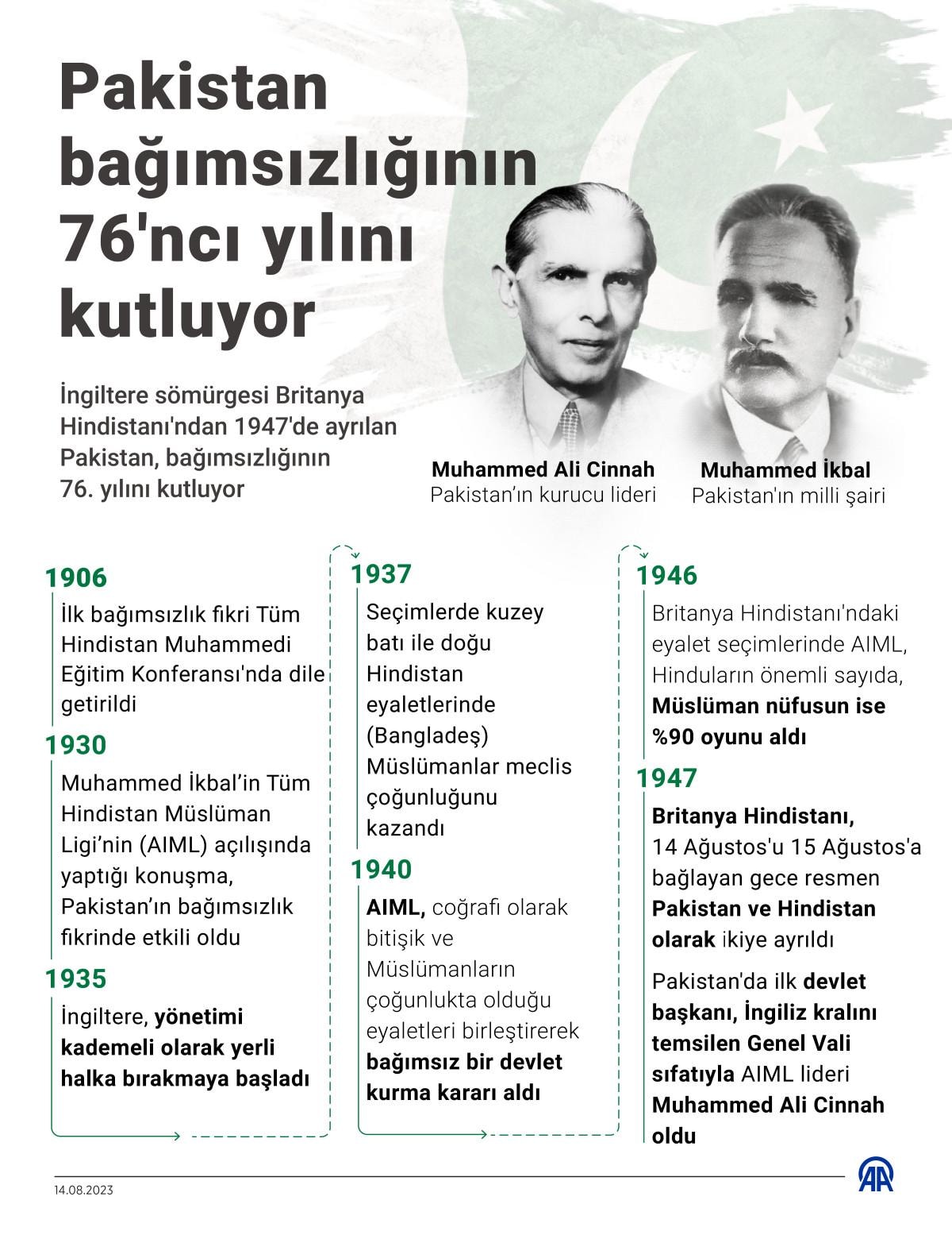 Pakistan'ın kurucu lideri Muhammed Ali Cinnah tarafından 76 yıl önce İngiliz sömürge hükümetine karşı ilan edilen bağımsızlığın yıl dönümünde, başkent İslamabad'da 31, 4 eyalet başkentinde ise 21 pare top atışı yapıldı.