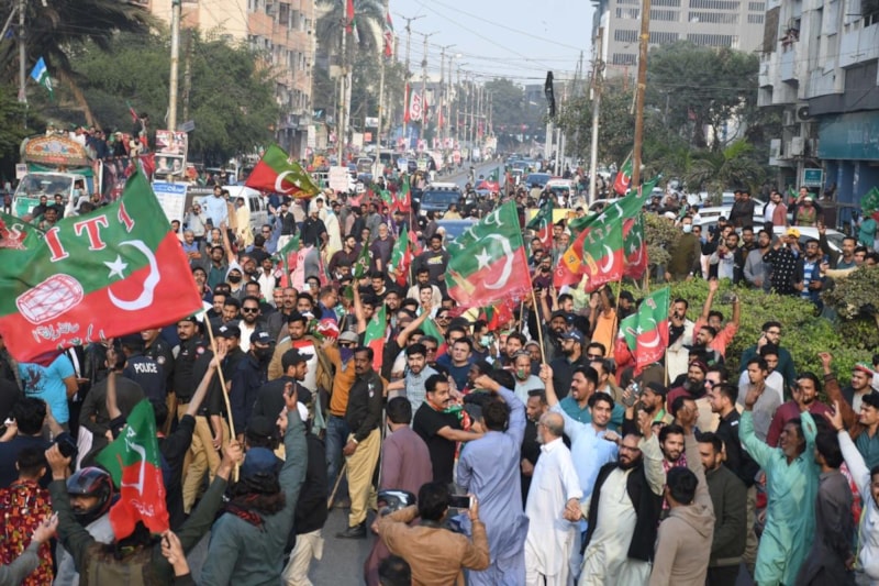 Pakistan’ın Karaçi kentinde eski Başbakan Imran Khan’ın partisi Pakistan Adalet Hareketi (PTI) miting düzenledi.