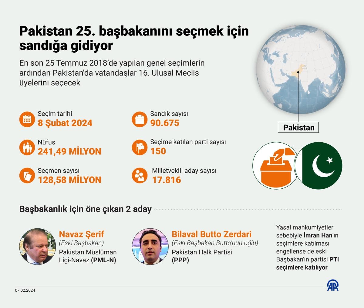 Pakistan'da 8 Şubat'ta genel seçimler düzenlenecek.