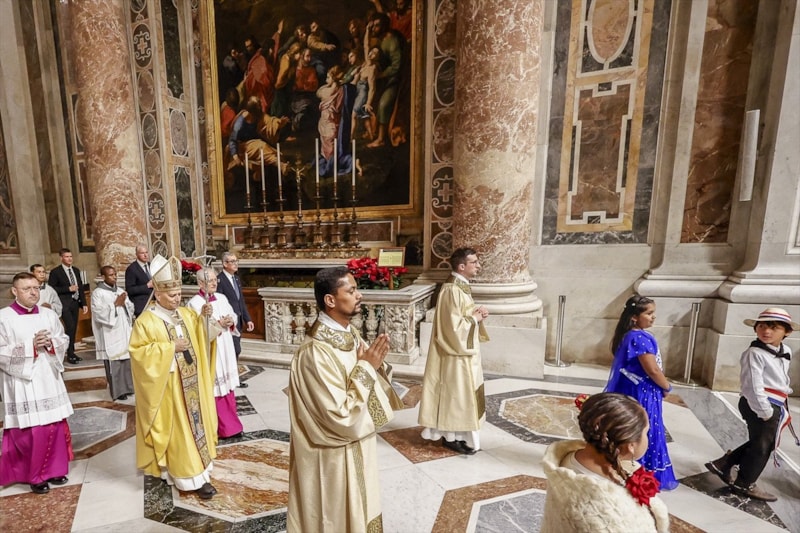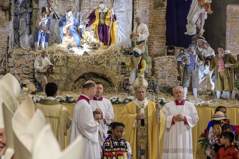 Vatikan'ın ünlü Aziz Petrus Bazilikası'ndaki Noel ayinine, Katolik Kilisesi'nden kardinaller, piskoposlar, rahipler ve Vatikan'a akredite kordiplomatik temsilciler ile çok sayıda davetli katıldı.