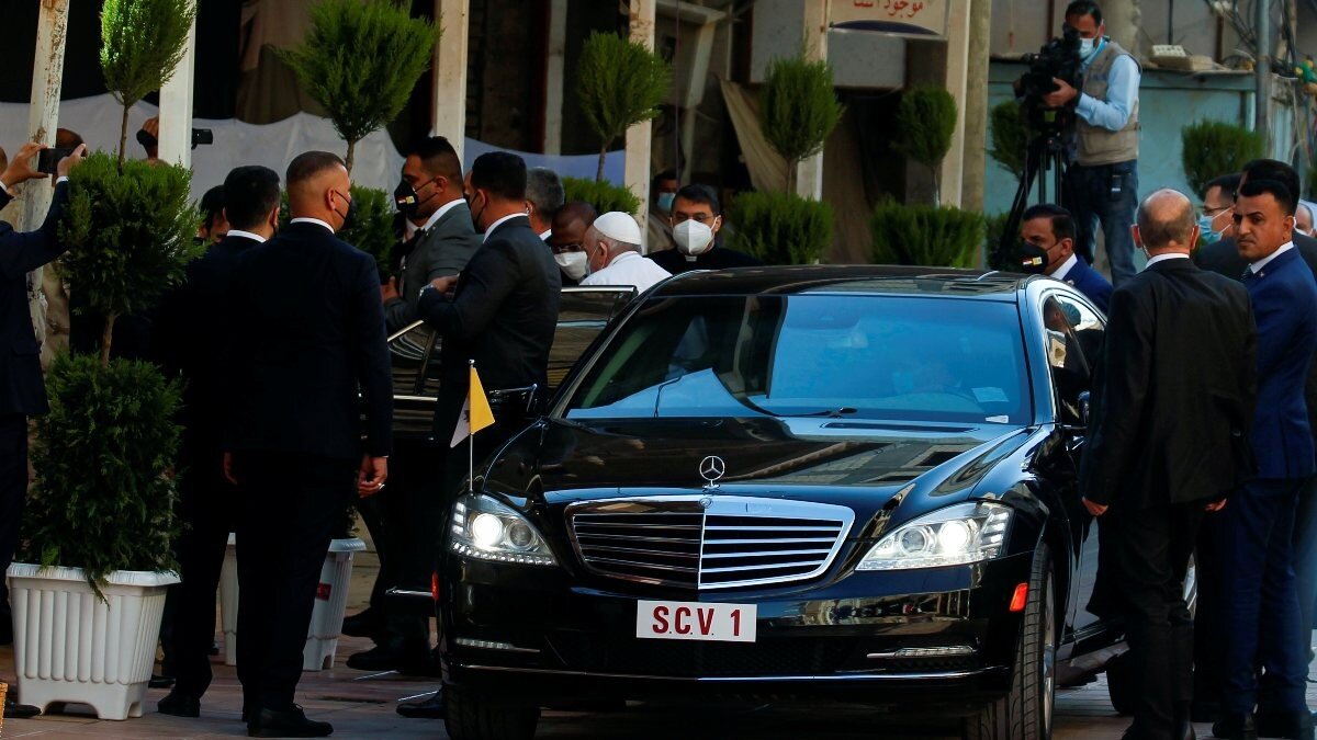 Irak'ta son dönemde sivil ve askeri hedeflere yönelik saldırıların arttığı bir dönemde ziyaretini ısrarla gerçekleştiren Papa için, buradaki temasları kapsamında zırhlı araç tahsis edildi.