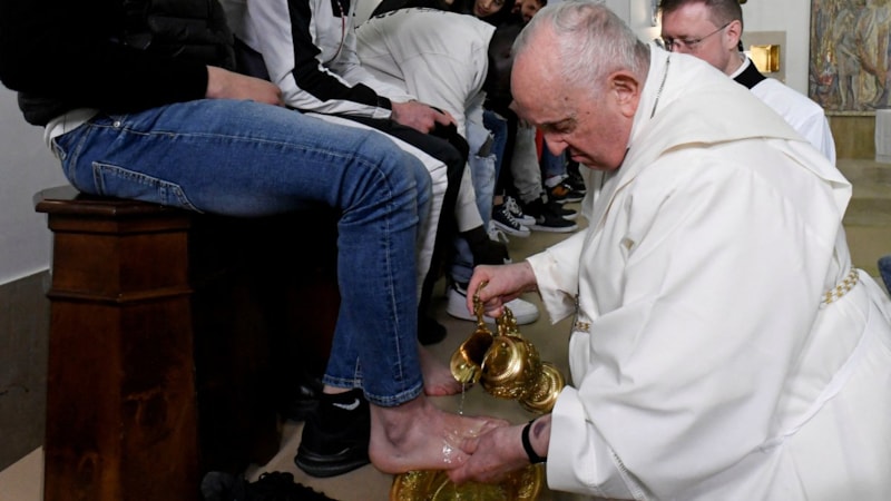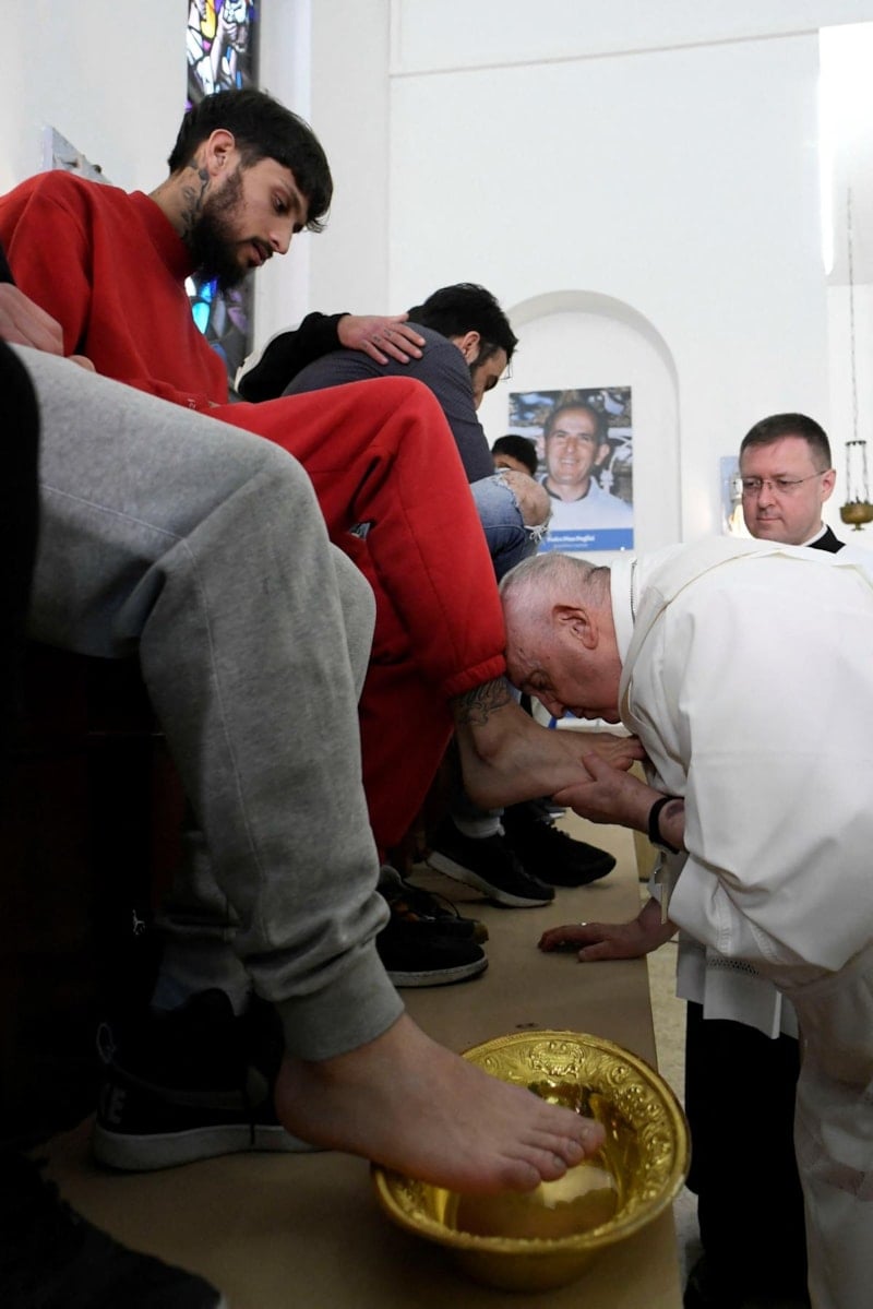 Papa, geleneksel dua töreninde cezaevinde kalan gençlerin ayaklarını yıkadı.