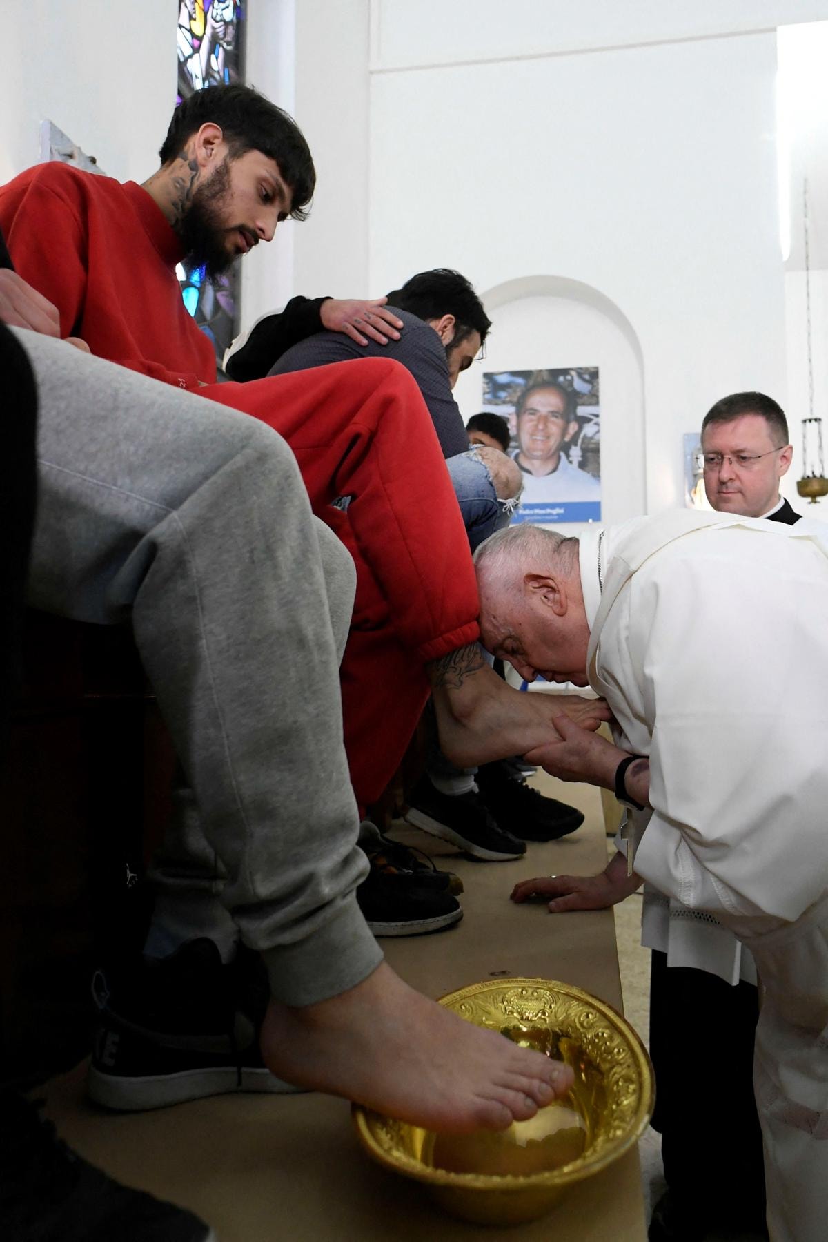 Katoliklerin ruhani lideri ve Vatikan Devlet Başkanı Papa Francis, Paskalya öncesi düzenlenen geleneksel törende genç mahkumların ayaklarını yıkayıp öptü.