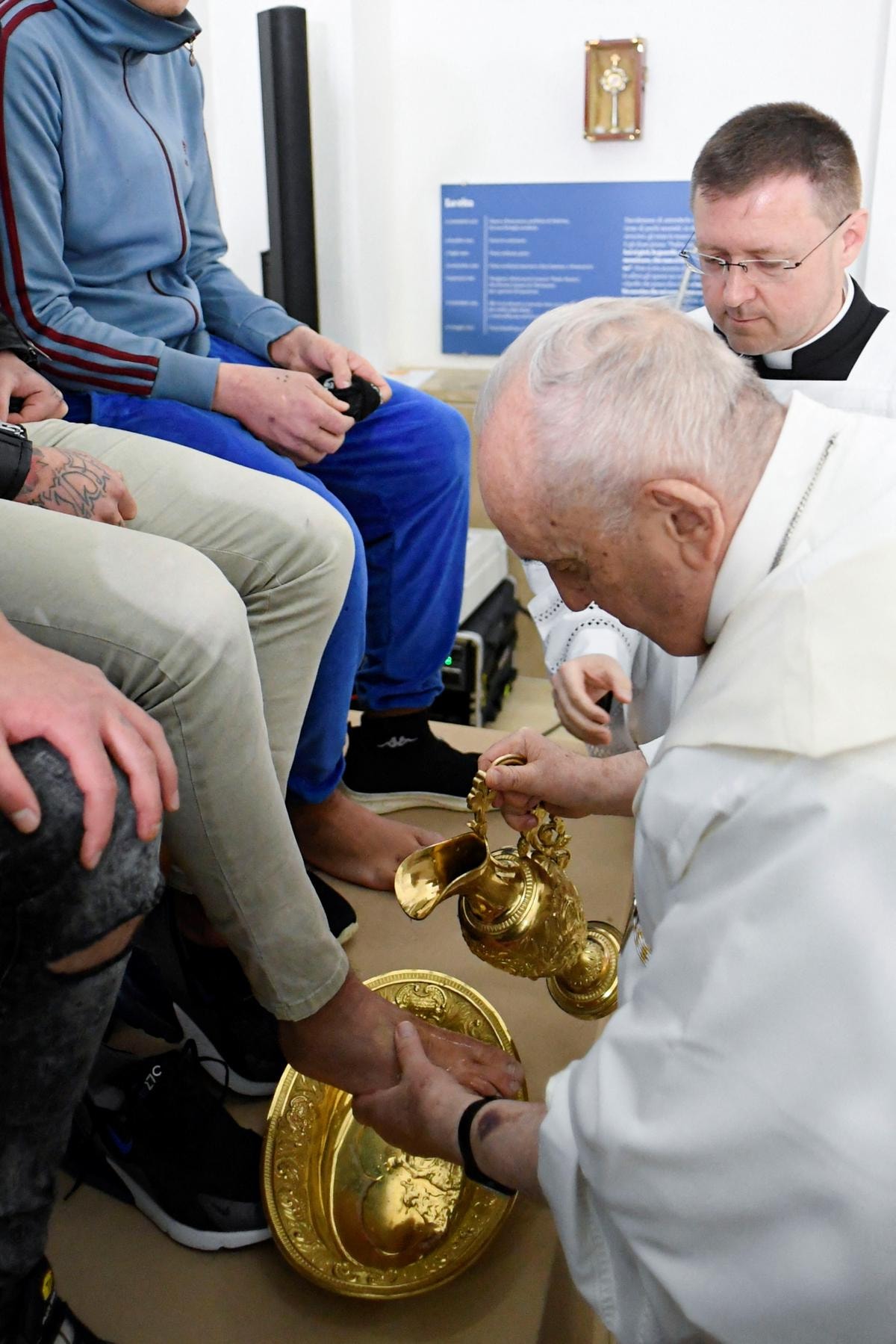 Hz. İsa'nın havarilerine olan alçak gönüllülüğünü yansıttığına inanılan geleneksel törende Papa, 12 genç mahkumun ayaklarını önce yıkadı, sonra da öptü.