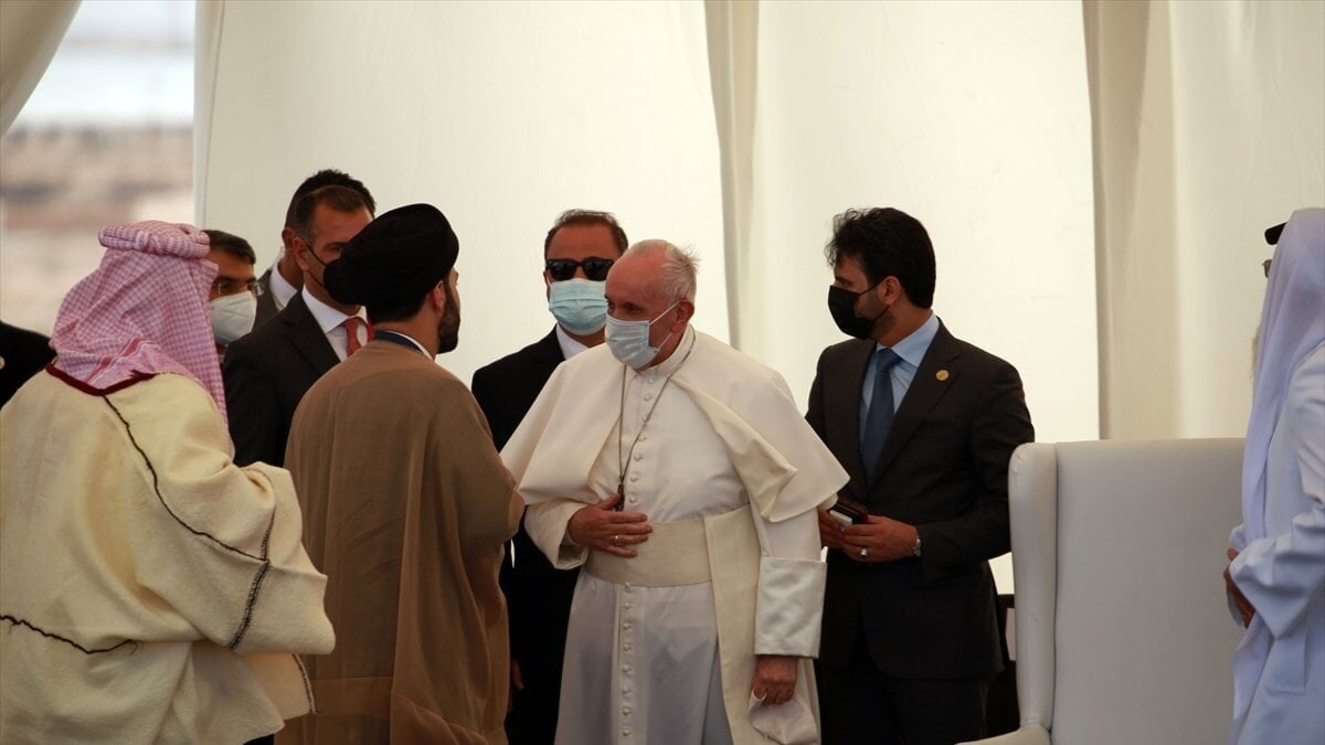 Katoliklerin Ruhani lideri Papa Francis, tarihi Irak ziyaretinin ikinci gününde Hazreti İbrahim'in doğum yeri olduğuna inanılan Nasıriye'de bulunan Ur antik kentinde Hristiyan ve din adamlarıyla bir araya geldi.