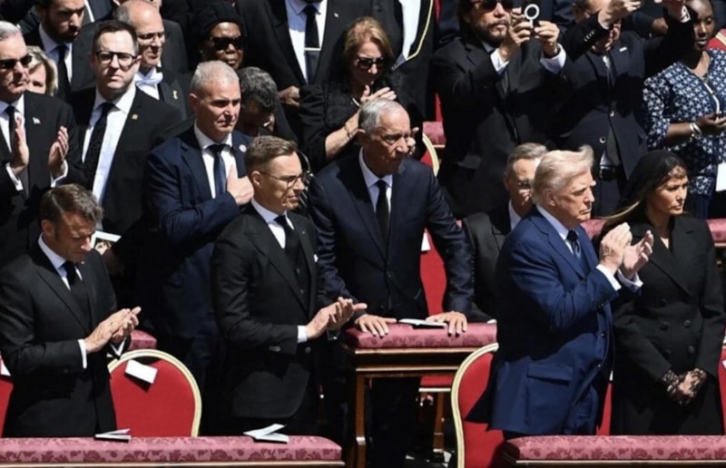 Roma'daki törende Donald Trump ve eşi Melania Trump, dünya liderleriyle birlikte ilk sırada yer aldı.