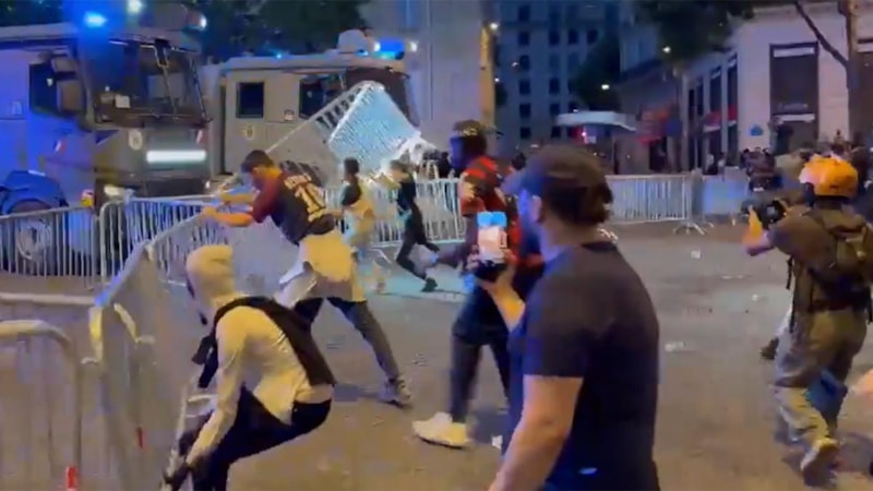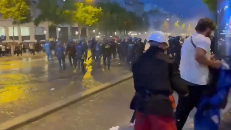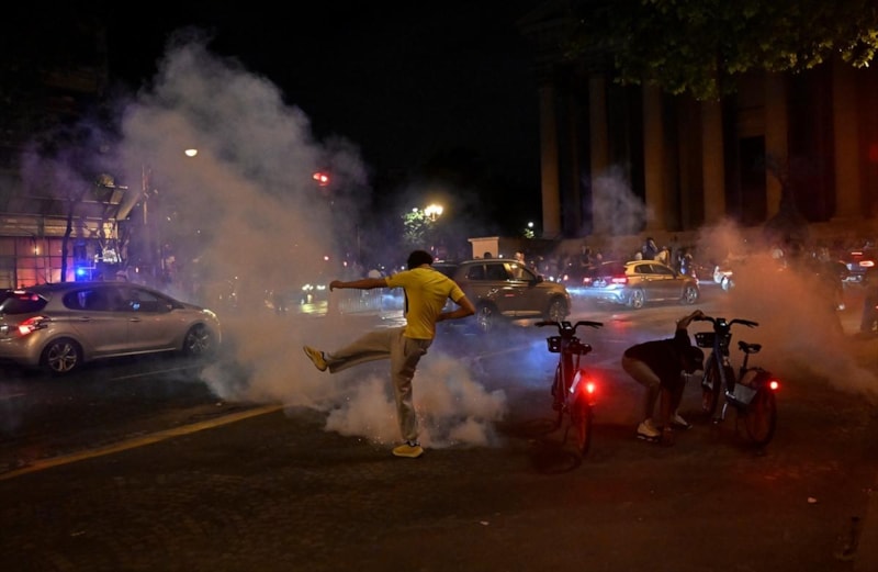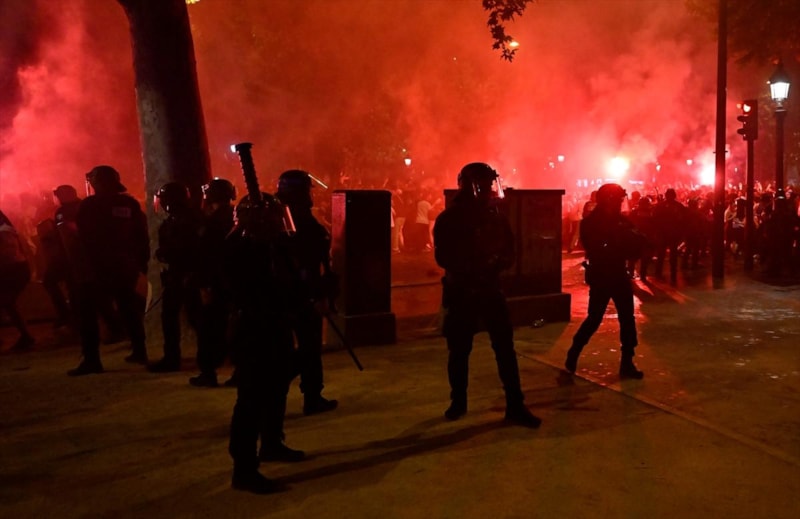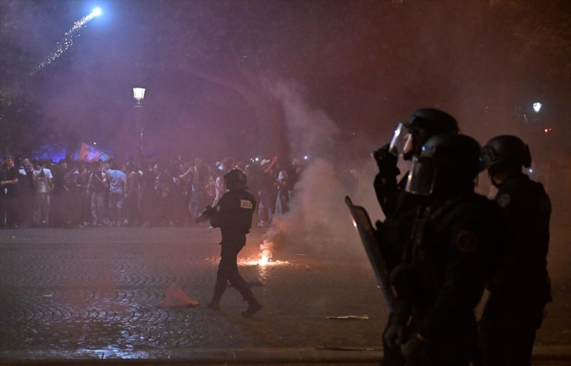 Sosyal medyaya yansıyan görüntülerde Parc des Princes stadının etrafında ve Şanzelize Caddesi'nde polisin taraftarlardan oluşan kalabalığı dağıtmak için biber gazı ve copla müdahalede bulunduğu görüldü.