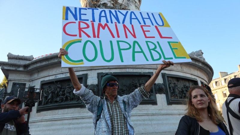 Fransa'nın başkenti Paris'te İsrail'in Gazze şehrine yönelik yoğun saldırılarını protesto eden binlerce kişi, "Katil Netanyahu, kahrolsun Siyonizm, Filistin Filistinlilerindir" sloganlarıyla İsrail'i kınadı.
