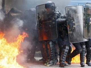 Paris'teki gösterilerde “Zenginlerin yasasını çekin, patronların yasasını çekin” sloganları atıldı.