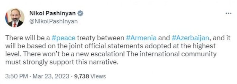Ermenistan ve Azerbaycan arasında bir barış anlaşması olacak ve bu anlaşma en üst düzeyde kabul edilen ortak resmi açıklamalara dayanacaktır. Yeni bir gerginlik olmayacak! Uluslararası toplum, bu söylemi güçlü bir şekilde desteklemelidir.