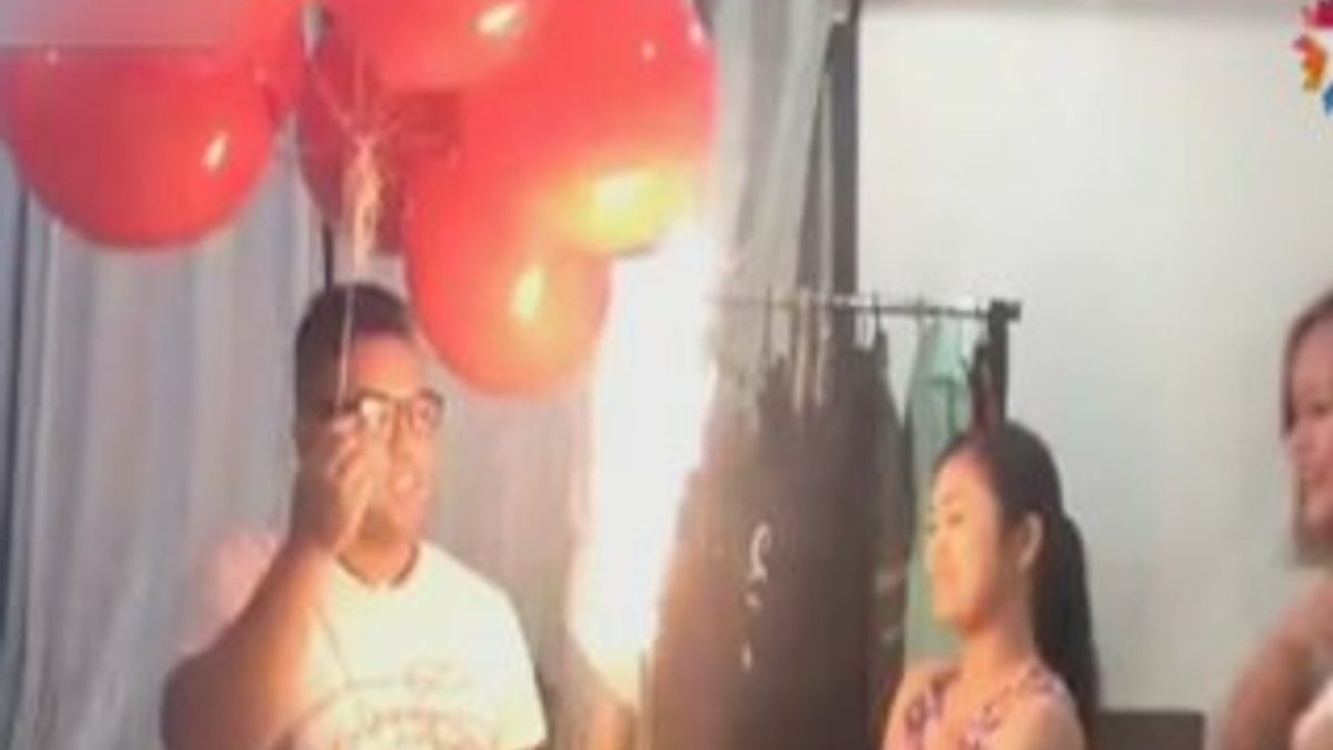Pastadaki mumları üflemek için eğilen gencin elindeki balonlar maytapın kıvılcımı ile temas etti. Tam o esnada olanlar oldu.