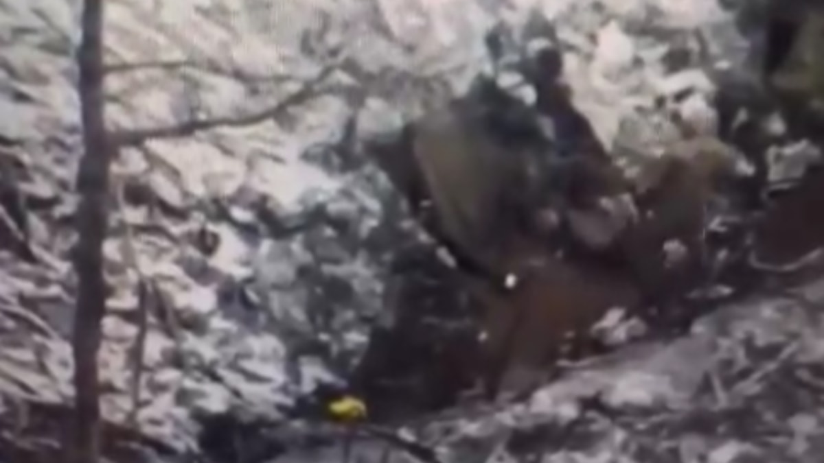 Rus askerinin drone'u etkisiz hale getirme girişimi, başka bir hava aracı tarafından saniye saniye kaydedildi.