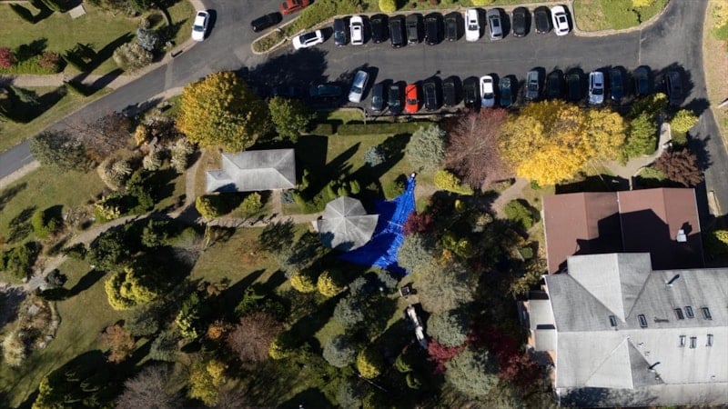 Örgütün karargah olarak kullandığı çiftlikten edinilen hava görüntülerinde kamp içerisinde çok sayıda araç olduğu ve araçların yol kenarlarına park edilmeye başlandığı görülüyor.