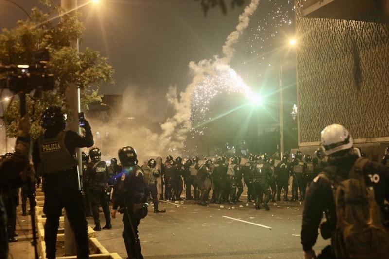 Peru’nun başkenti Lima’da binlerce kişinin katıldığı hükümet karşıtı protestolar şiddete dönüştü. Kongre binası önünde polisle karşı karşıya gelen göstericilerle güvenlik güçleri arasında yaşanan çatışmalarda en az 5 sivil yaralandı.