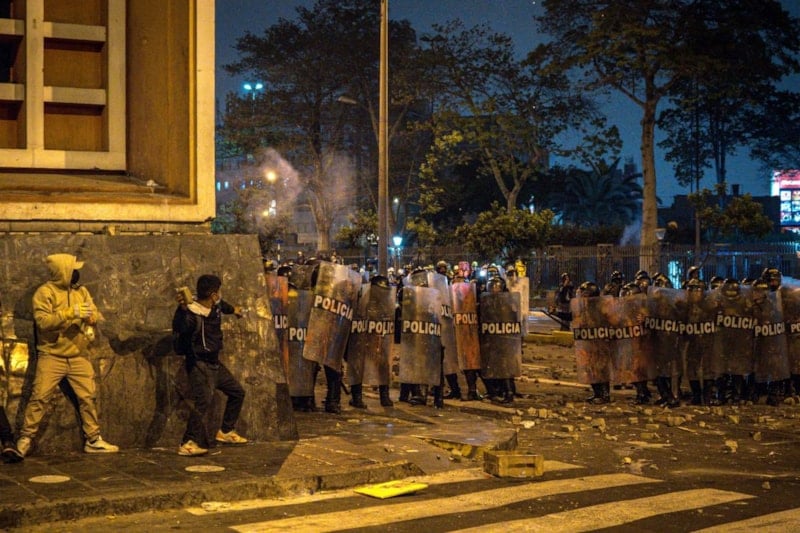 Yetkililer, bazı göstericilerin gece saatlerinde Peru Kongresi yerleşkesi yakınlarındaki güvenlik barikatlarını yıkmayı denediğini, kalabalıktaki diğer göstericilerin ise güvenlik güçlerine taş ve havai fişek fırlattığını belirtti.