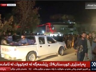 El konulan zırhlı araçlarla kent merkezinde ilerleyen Irak ordusuna binlerce Kerküklü konvoy yaparak eşlik ederken diğer yandan da peşmergenin kaçış anları görüntülendi.