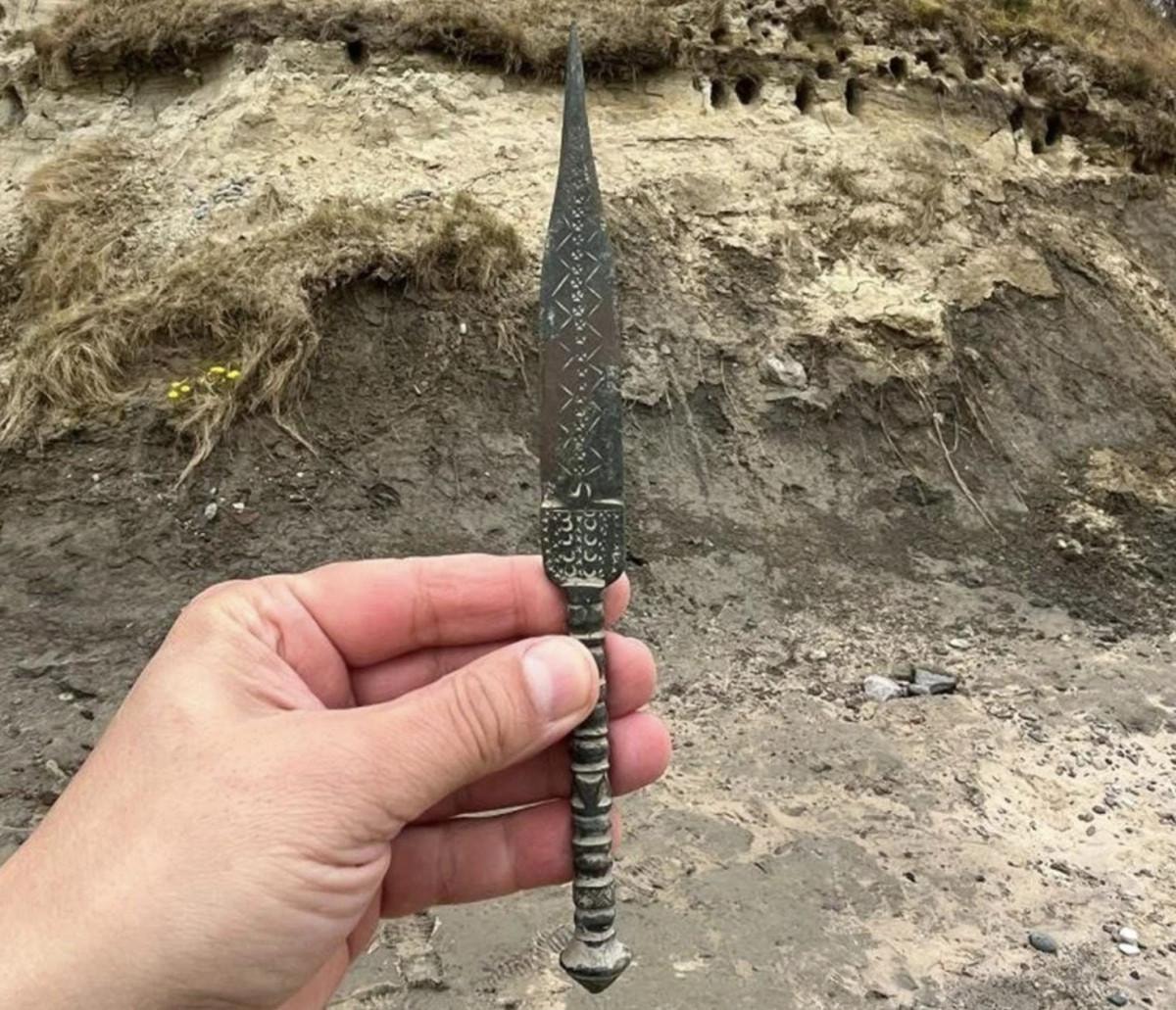 Jacek Ukowski ve Katarzyna Herdzik isimli şahıslar, 2 bin 500 yıllık hançeri bulduktan sonra Kamieńska Toprakları Tarihi Müzesi'ne teslim etti.