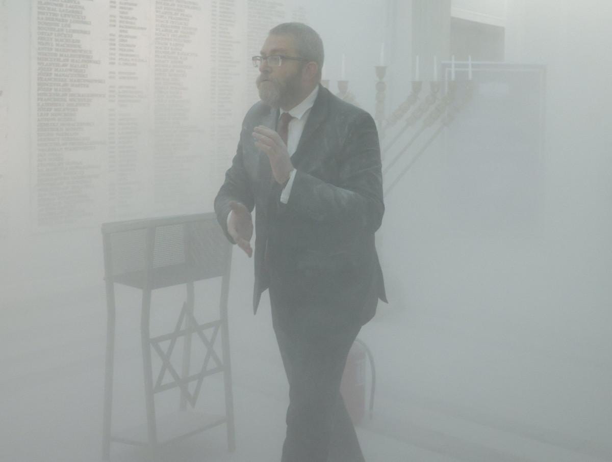 Braun, Polonya parlamentosunun alt kanadı Sejm'de Hanuka menorasındaki (8 günlük Yahudi bayramı Hanuka boyunca yakılan bir şamdan) mumları yangın söndürücü ile söndürdü.