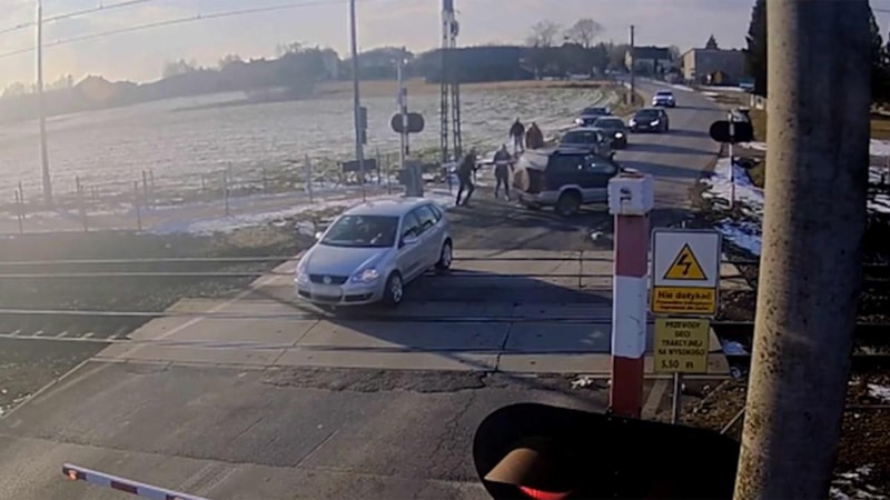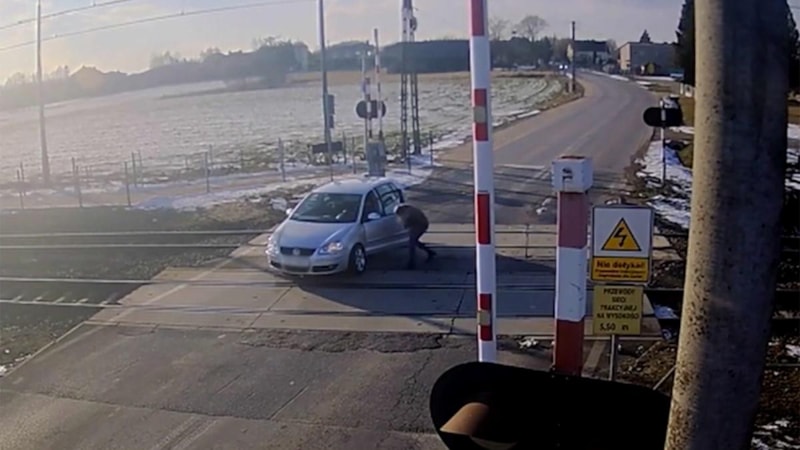 Polonya'da bir sürücü, demiryolu üzerinde kalan otomobili tren gelmeden yalnızca birkaç saniye önce çekerek olası bir kazayı önledi.