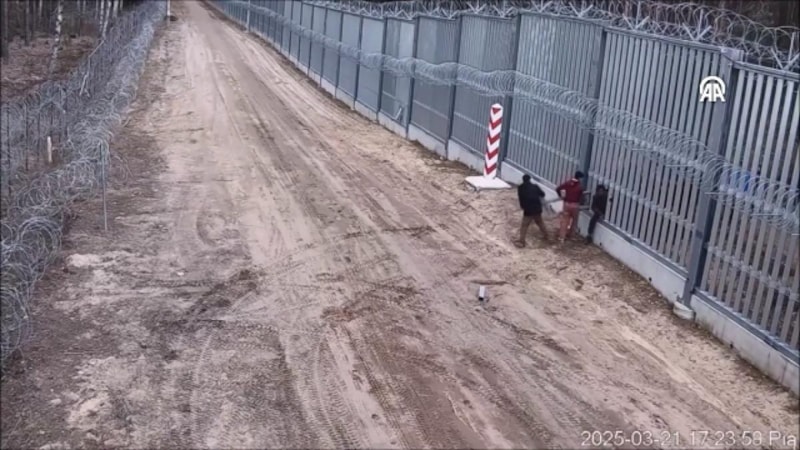 Polonya-Belarus sınırına inşa edilen demir bariyerleri keserek geçen düzensiz göçmenler, kameralara yansıdı.