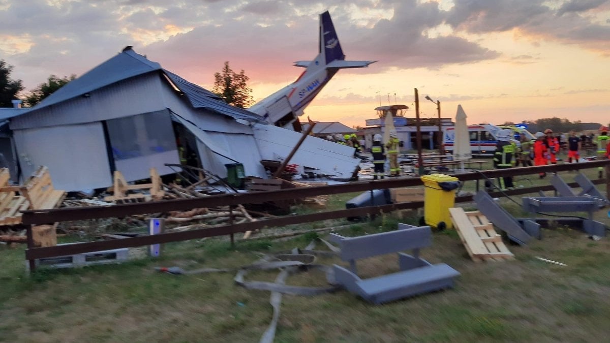 Polonya'nın başkenti Varşova yakınlarındaki Chrycynno Havaalanı'na iniş yapan Cessna 208 tipi uçak iniş sırasında kötü hava koşulları nedeniyle havaalanında bulunan hangarın üzerine düştü.