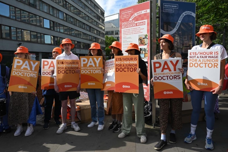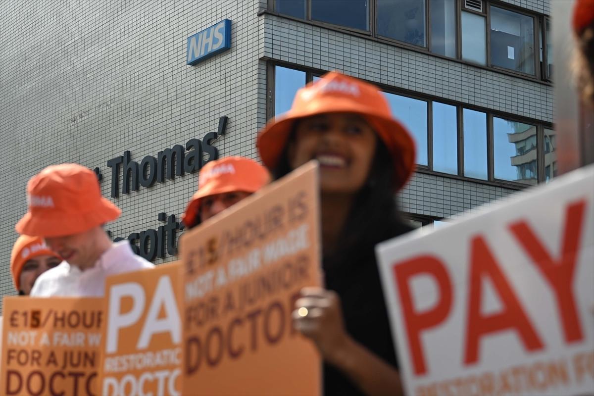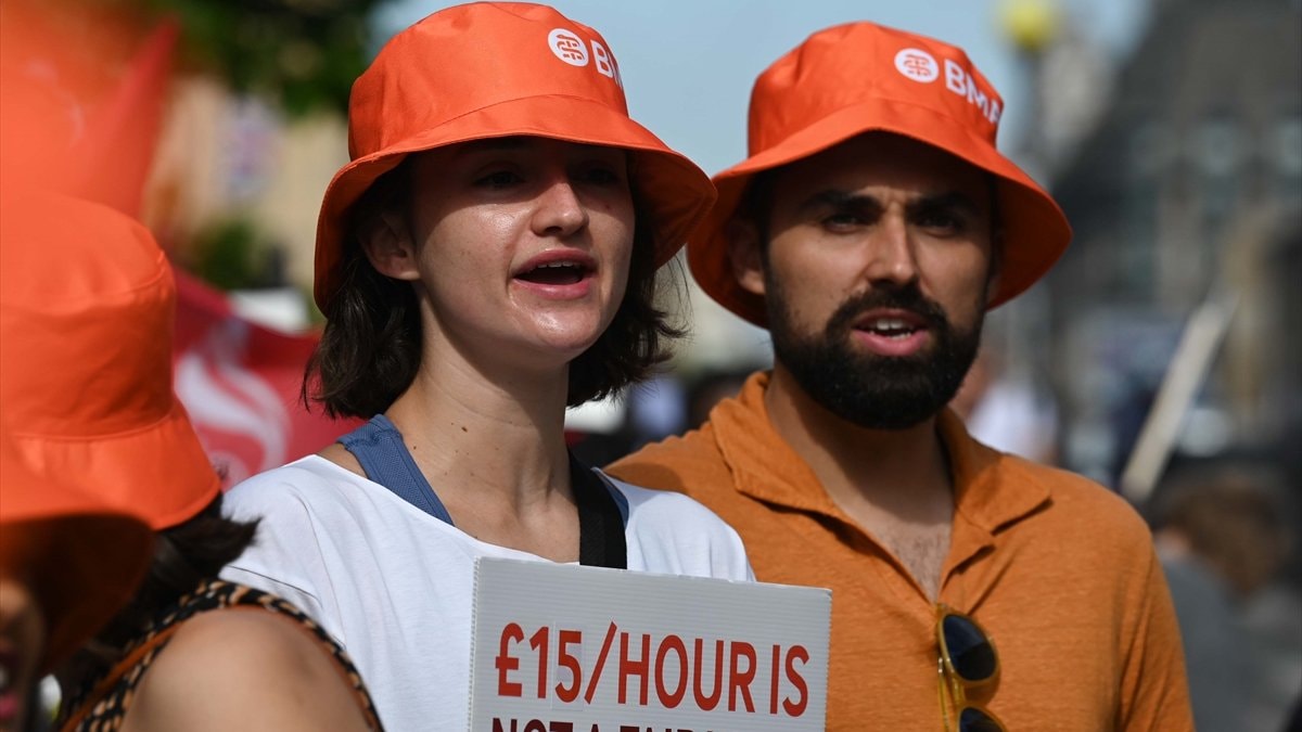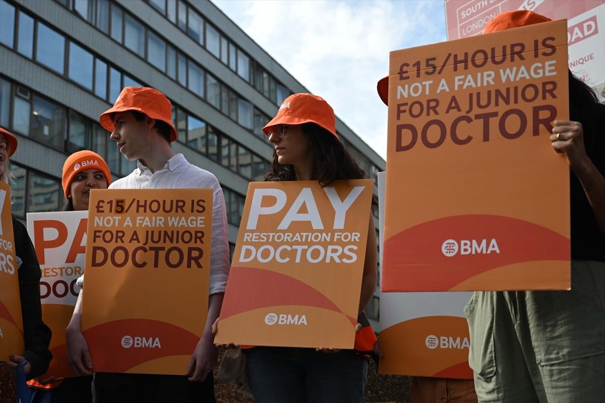 Hükümetle maaş düzenlemesi konusunda anlaşmazlık yaşayan İngiltere Tabipler Birliği (BMA) üyesi pratisyen hekimler, Londra'nın St. Thomas Hastanesi önünde toplanarak yetersiz zamları protesto etti.