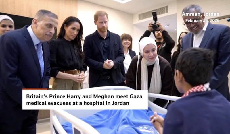 İngiltere Kralı 3. Charles'ın oğlu Sussex Dükü Prens Harry ve Düşesi Meghan Markle, Gazze'de İsrail saldırılarında yaralanan ve tedavi amacıyla Ürdün'e getirilen Filistinli yaralıları ziyaret etti. Çift doktorlardan yaralılar hakkında bilgi aldı.