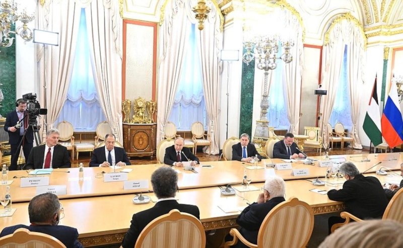 Rusya Devlet Başkanı Vladimir Putin, Filistin Devlet Başkanı Mahmud Abbas ile Moskova’da yaptığı görüşmede, "Bölgede kalıcı barışın, ancak iki halk için iki devlet öngören ve evrensel olarak tanınan uluslararası hukuk temelinde sağlanabileceğine her zaman inandık" dedi.