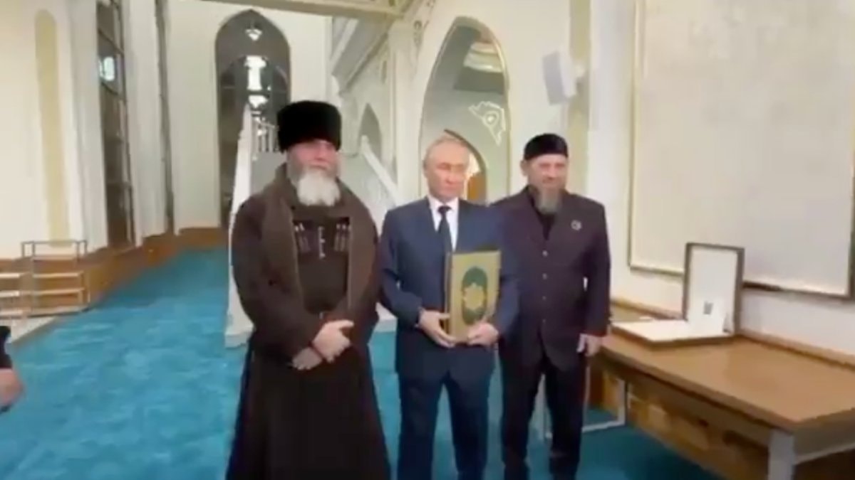 Rusya Devlet Başkanı Putin, Çeçenistan’da Hz. İsa Camii'ne bir ziyarette bulundu.Putin burada, kendisine hediye edilen Kur'an-ı Kerim'i önce öptü ardından da kucağına aldı.